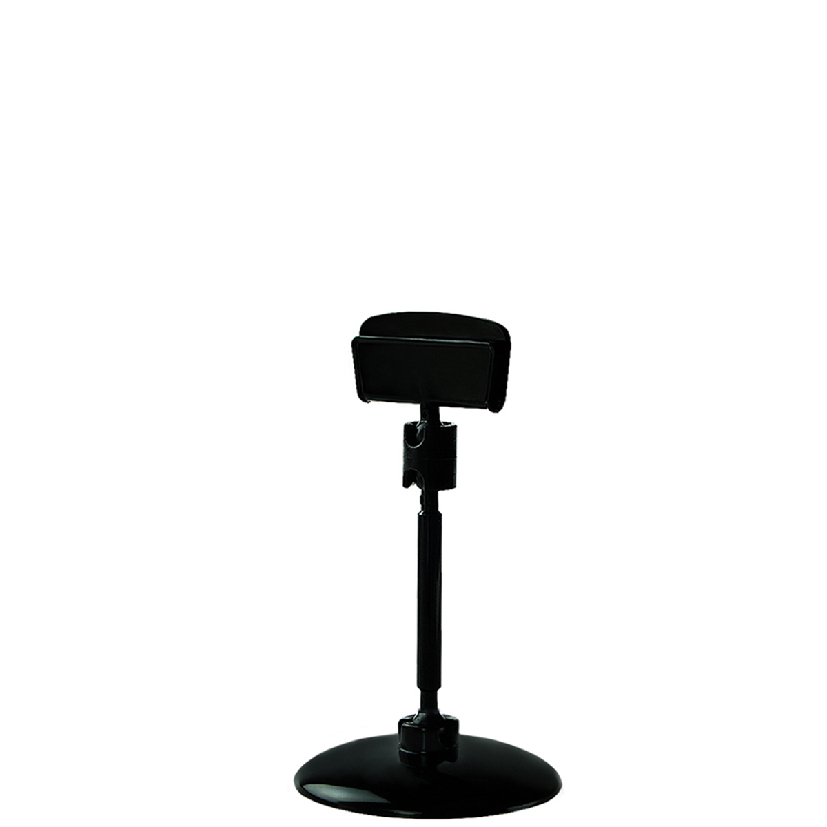 Ценникодержатель BASE-CLIP на круг.подставке Ø-50 ножка 0 мм — шарнирный ценникодержатель на круглой подставке, который подходит для отделов с витринной выкладкой. Выполнен в двух цветах: прозрачном и чёрном. Имеет три варианта высоты: без ножки и с удлинителем 50 или 100 мм. Максимальная толщина вставки: 0,7 мм. Таблички в комплект не входят
