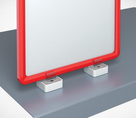 Квадратный магнитный держатель рамки под углом 90° к поверхности и паралельно поверхности, позволяет крепить пластиковые рамки различных форматов на любых металлических поверхностях. Рекомендуется использовать по 2 магнитных держателя