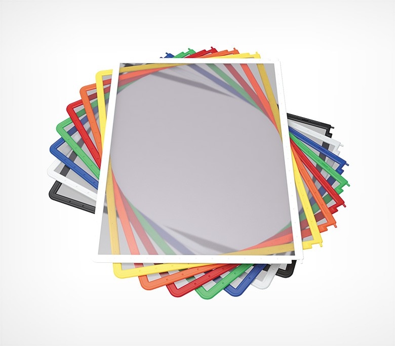 • Пластиковая рамка для перикидной системы с встроенным защитным карманом-протектором. Вставка информации с узкой стороны. Формат-А4. Имеет встроенные фиксаторы для крепления в держателях перекидных систем. Толщина держателя 2,5 мм. Рекомендуется использовать в перекидных системах офисного назначения.
