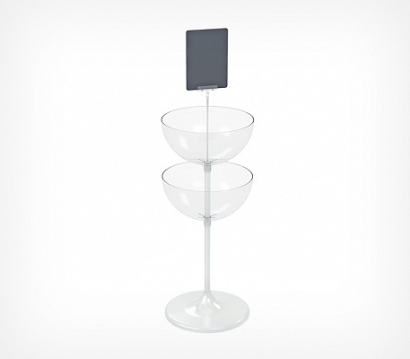 Двухуровневый дисплей UNIBOWL-TOWER-24 предназначен для выкладки продовольственных и непродовольственных товаров в компактной упаковке.